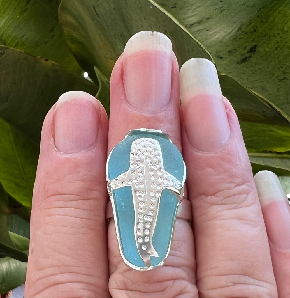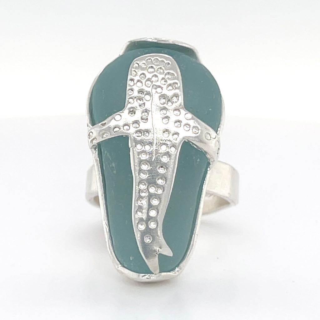 whale shark genuine sea glass ring